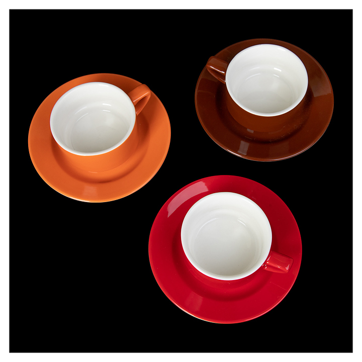 Кофейная пара Corone Gusto 7919/7920 предназначена для подачи кофе в процессе сервировки стола на предприятиях общественного питания, а также в домашних условиях. Серия отличается стильным дизайном и яркой цветовой палитрой в теплых тонах. Модель состоит из классического блюдца и чашки круглого сечения с рукояткой и прямым бортом. Возможность компактного штабелирования аналогичных моделей. Изделия выполнены из высококачественного фарфора, внешняя поверхность чашки и верх блюдца с коричневым покрытием, обратные поверхности белого цвета. Особенности: