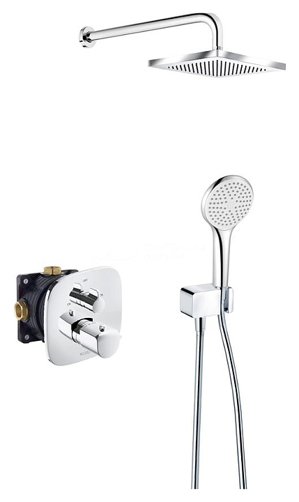 Душевой комплект KLUDI Ameo 418310575 предназначен для использования в ванных помещениях. Модель оснащена квадратным верхним душем и круглой ручной лейкой. Термостат гарантирует подачу воды заданной температуры, что исключает ожоги. Верхний душ выполнен из пластика. В комплект поставки входят верхний душ 6653105-00, душевой гарнитур 6787005-00, кронштейн 6651405-00, скрытая часть 88011 и термостат 418300575.
