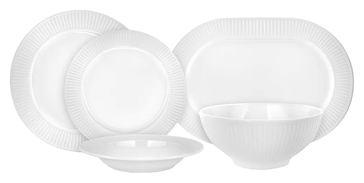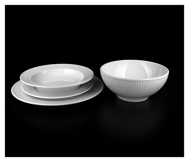 Обеденный сервиз PILLIVUYT 994204BX1 серии Plisse предназначен для профессионального использования в ресторанах, кафе, барах, гастрономах и супермаркетах. Изделия выполнены из жаропрочного фарфора с покрытием из глазури, обладающего нулевой пористостью, что гарантирует высокие гигиенические качества и долговечность. Комплектация: