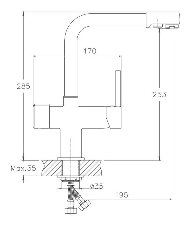 Смеситель Haiba HB70088-8 предназначен для подачи горячей и холодной воды в кухонных помещениях. Модель оснащена встроенным изливом для питьевой воды и керамическим картриджем, который обеспечивает плавный ход рычага смесителя, контроль и точность при выборе напора и температуры. Аэратор создает мягкую струю без брызг. Изделие выполнено из латуни, отличающейся прочностью, долговечностью и устойчивостью к перепадам температуры. В комплект поставки входит подводка. Дополнительные характеристики: