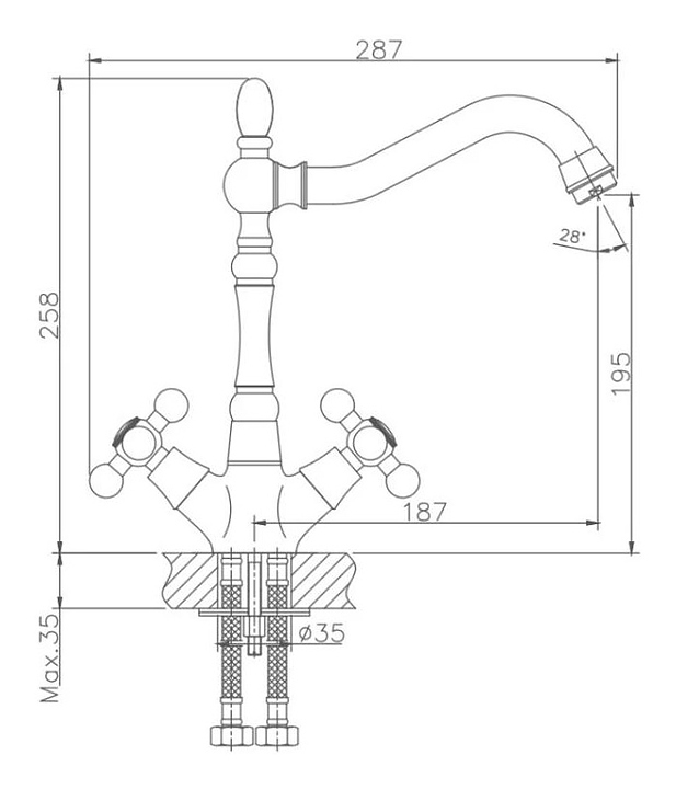Смеситель Haiba HB4419-4 предназначен для подачи горячей и холодной воды в кухонных помещениях. Модель оснащена керамической кран-буксой, которая обеспечивает бесшумное смешивание воды. Аэратор создает мягкую струю без брызг. Изделие выполнено из латуни, отличающейся прочностью, долговечностью и устойчивостью к перепадам температуры. В комплект поставки входит подводка. Дополнительные характеристики: