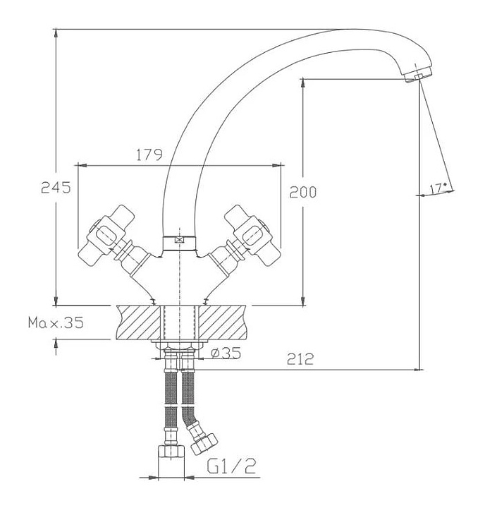 Смеситель Haiba HB4218 предназначен для подачи горячей и холодной воды в кухонных помещениях. Модель оснащена керамической кран-буксой, которая обеспечивает бесшумное смешивание воды. Аэратор создает мягкую струю без брызг. Изделие выполнено из латуни, отличающейся прочностью, долговечностью и устойчивостью к перепадам температуры, рукоятки - из керамики. В комплект поставки входит подводка. Дополнительные характеристики: