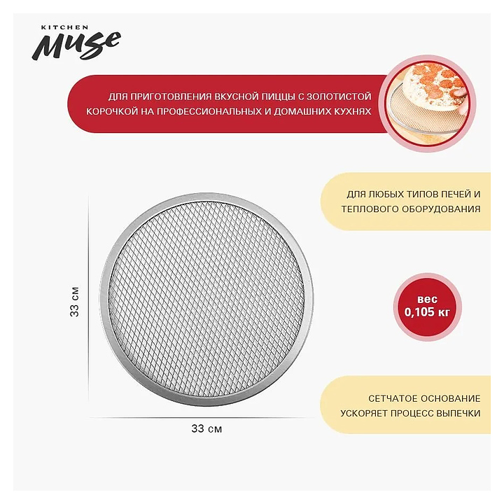 Противень-сетка для пиццы Kitchen Muse KM-PS13 используется совместно с печами на предприятиях общественного питания и торговли. Изделие выполнено из алюминия. Внимание! Информация о товарах, размещенная на сайте, не является публичной офертой, определяемой положениями Части 2 Статьи 437 Гражданского кодекса Российской Федерации. Производители вправе вносить изменения в технические характеристики, внешний вид и комплектацию товаров без предварительного уведомления. Уточняйте характеристики у наших менеджеров перед оформлением заказа. |