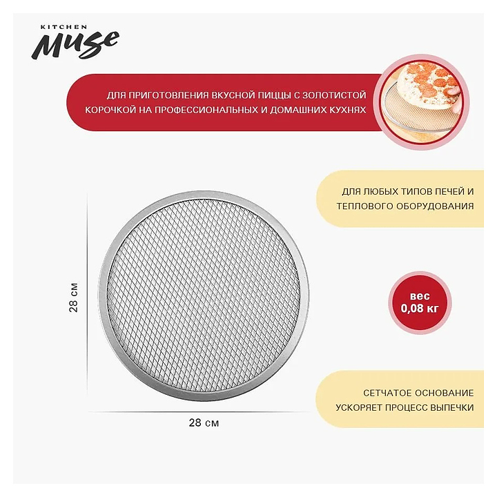 Противень-сетка для пиццы Kitchen Muse KM-PS11 используется совместно с печами на предприятиях общественного питания и торговли. Изделие выполнено из алюминия. Внимание! Информация о товарах, размещенная на сайте, не является публичной офертой, определяемой положениями Части 2 Статьи 437 Гражданского кодекса Российской Федерации. Производители вправе вносить изменения в технические характеристики, внешний вид и комплектацию товаров без предварительного уведомления. Уточняйте характеристики у наших менеджеров перед оформлением заказа. |
