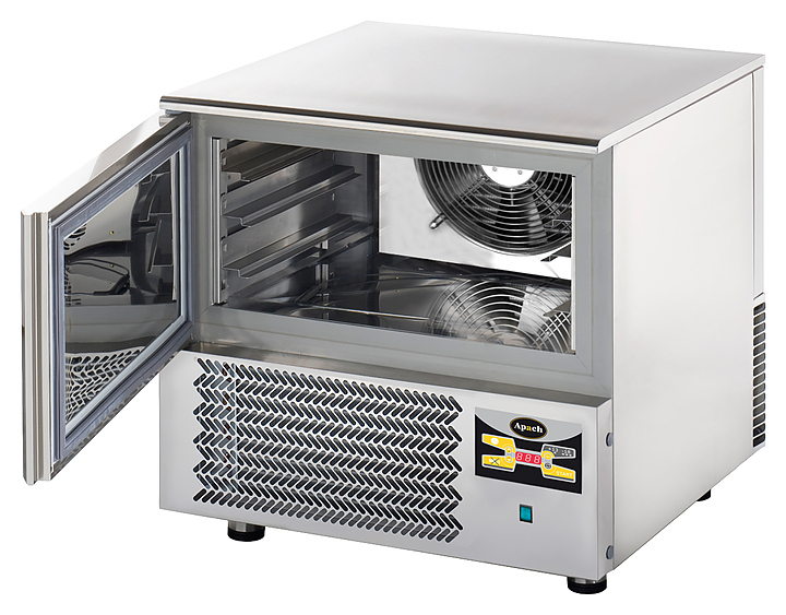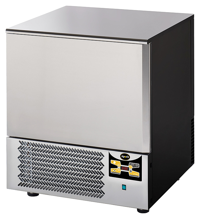 Шкаф шоковой заморозки Apach SH03 предназначен для быстрой заморозки продуктов и приготовленных блюд на предприятиях общественного питания и торговли. Модель с электронной панелью управления оснащена встроенным холодильным агрегатом, самозакрывающимися дверями с магнитным уплотнителем и регулируемыми по высоте ножками. Корпус и внутренняя камера выполнены из нержавеющей стали AISI 304, днище, потолок и тыльная часть - из оцинкованного листа, изоляция - из пенополиуретана толщиной 60 мм. В комплект поставки входит температурный щуп. Гастроемкости и противни в комплект поставки не входят и приобретаются отдельно. Особенности: