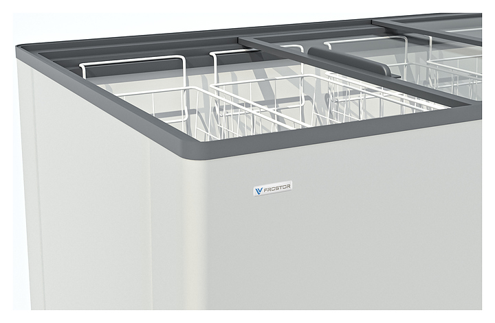 Морозильный ларь Frostor F 215 С предназначен для для демонстрации, заморозки и длительного хранения продуктов и полуфабрикатов в складских помещениях, производственных цехах и на предприятиях общественного питания и торговли. Ларь оснащен крышкой с прямым стеклом и встроенным холодильным агрегатом. Корпус и камера выполнены из оцинкованной пластифицированной стали, испаритель - из алюминия, крышка - из низкоэмиссионного закаленного стекла. Особенности: