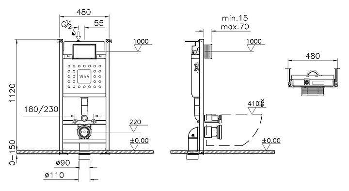 Инсталляция для унитазов Vitra V-Fix Core 732-5800-01 12 см