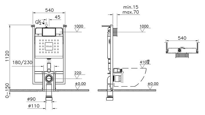 Инсталляция Vitra V-Fix Core 738-5800-01 предназначена для установки с подвесными и приставными унитазами. Инсталляция подходит для установки за гипсокартонной перегородкой и перед капитальной стеной. Модель выполнена из стали, оцинкована снаружи и внутри, а также покрыта краской методом порошкового напыления, что полностью исключает коррозию и гниение. В комплект поставки входят инсталляция, бачок и универсальные крепления к стене и полу. Шумоизоляционная прокладка в комплект поставки не входит и приобретается отдельно. Особенности: