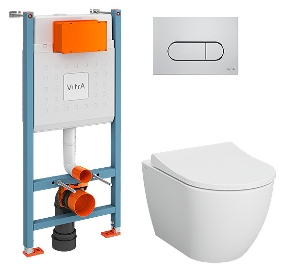 Унитаз подвесной с инсталляцией, клавишей смыва и сиденьем Vitra Mia Round 9873B003-7201