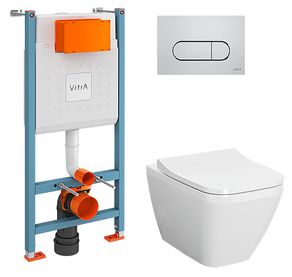 Унитаз подвесной с инсталляцией, клавишей смыва и сиденьем Vitra Integra Square 9856B003-7207