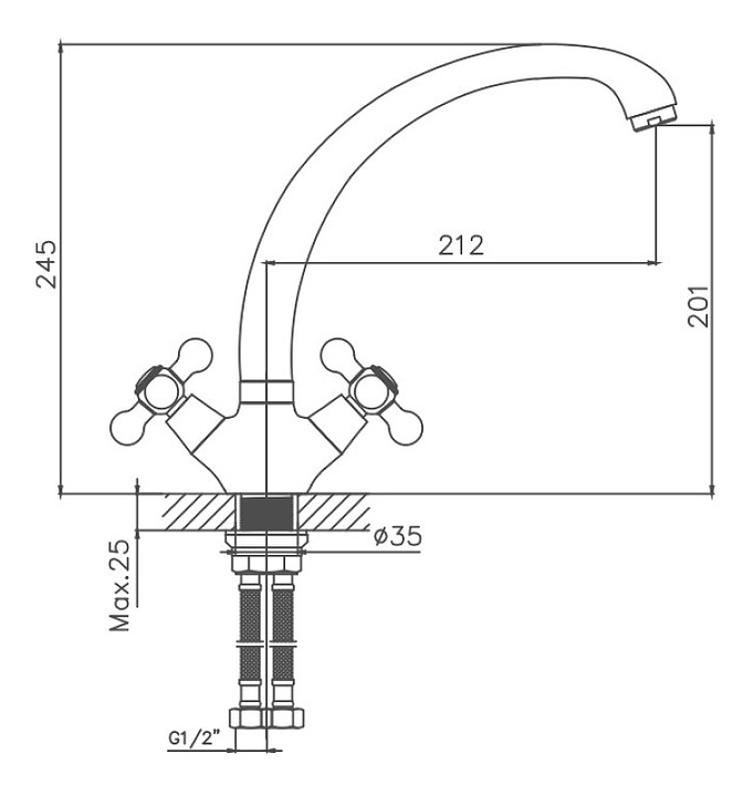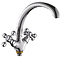 Смеситель Cron CN4319 предназначен для подачи горячей и холодной воды в кухонных помещениях. Модель оснащена вентилями и керамической кран-буксой, которая обеспечивает бесшумное смешивание воды. Аэратор создает мягкую струю без брызг. Изделие выполнено из металлического сплава, который отличается прочностью и долговечностью. В комплект поставки входит подводка. Дополнительные характеристики: