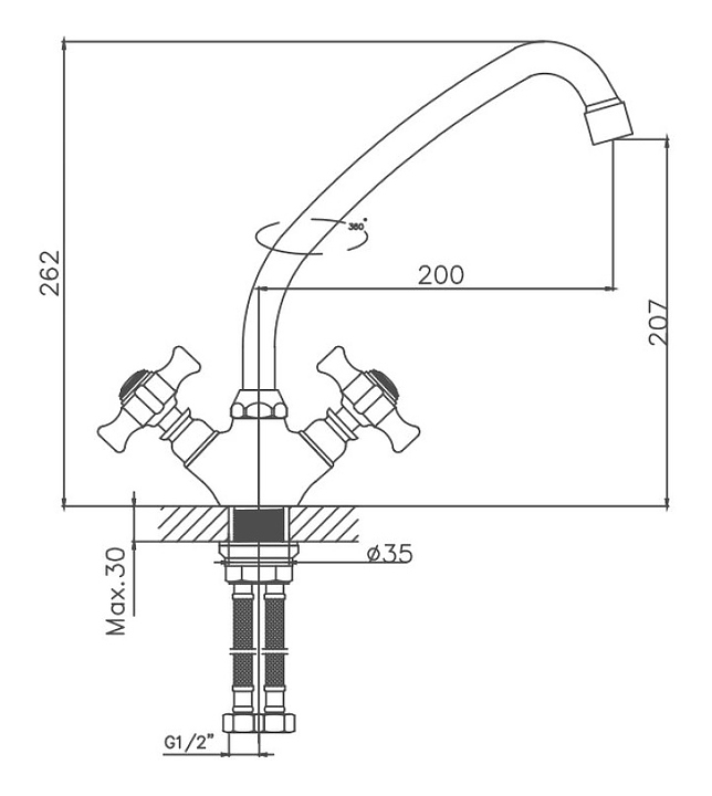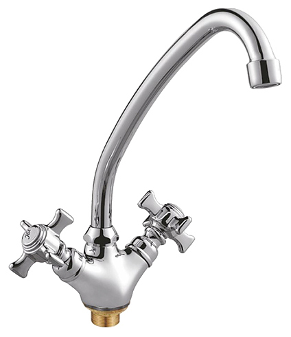 Смеситель Cron CN4124 предназначен для подачи горячей и холодной воды в кухонных помещениях. Модель оснащена вентилями и керамической кран-буксой, которая обеспечивает бесшумное смешивание воды. Аэратор создает мягкую струю без брызг. Изделие выполнено из металлического сплава, который отличается прочностью и долговечностью. В комплект поставки входит подводка. Дополнительные характеристики:
