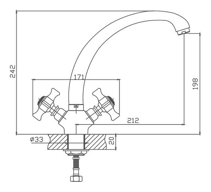Смеситель Cron CN4724 предназначен для подачи горячей и холодной воды в кухонных помещениях. Модель оснащена вентилями и керамической кран-буксой, которая обеспечивает бесшумное смешивание воды. Аэратор создает мягкую струю без брызг. Изделие выполнено из металлического сплава, который отличается прочностью и долговечностью. В комплект поставки входит подводка. Дополнительные характеристики: