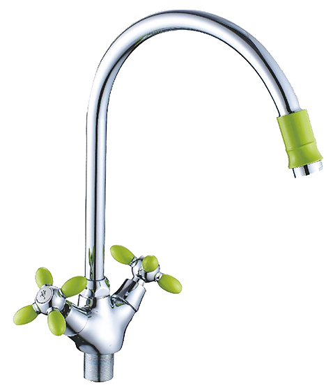 Смеситель Cron CN46127-12 предназначен для подачи горячей и холодной воды в кухонных помещениях. Модель оснащена вентилями и керамической кран-буксой, которая обеспечивает бесшумное смешивание воды. Аэратор создает мягкую струю без брызг. Изделие выполнено из металлического сплава, который отличается прочностью и долговечностью. В комплект поставки входит подводка. Дополнительные характеристики: