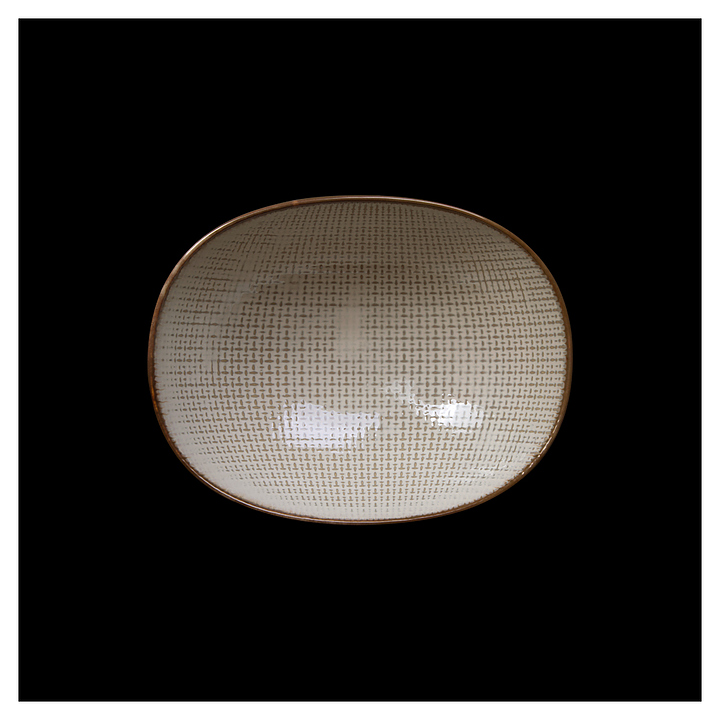 Салатник Corone Alveare HS179463 предназначен для профессионального использования в ресторанах. Модель имеет традиционную овальную форму, окантовку цвета теплой сепии и уникальный декор, схожий с текстурой холста для живописи. Посуда изготавливается из профессионального прочного фарфора цвета льняного семени. Особенности:
