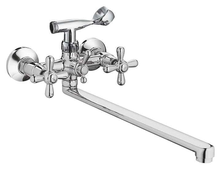 Смеситель для ванны и душа Cron CN2125 предназначен для подачи горячей и холодной воды в ванных помещениях. Керамическая кран-букса обеспечивает бесшумное смешивание воды. Аэратор создает мягкую струю без брызг. Изделие выполнено из металлического сплава, который отличается прочностью и долговечностью, шланг - из металла. В комплект поставки входят смеситель, шланг, душевая лейка, держатель душевой лейки и эксцентрики. Особенности: