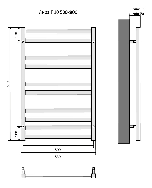 Полотенцесушитель водяной Aquatek Лира П10 50х80 см, хром