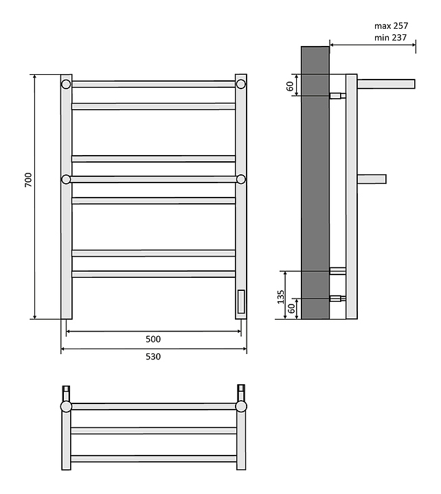 Электрический полотенцесушитель Aquatek Альфа П7 предназначен для подогрева и сушки полотенец, а также для обогрева ванных комнат в квартирах, коттеджах и частных домах. Модель оснащена таймером и диммером справа. Изделие выполнено из нержавеющей стали, отличающейся прочностью, долговечностью и устойчивостью к коррозии. В комплект поставки входят полотенцесушитель, съемная кабель-вилка, 2 втулки-переходника для подключения, 4 крепления к стене и шестигранный ключ. Особенности: