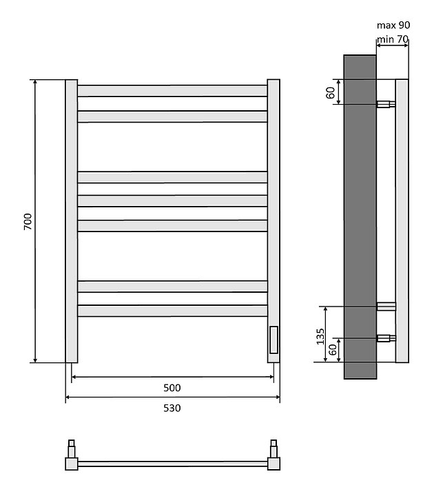 Электрический полотенцесушитель Aquatek Поларис П7 предназначен для подогрева и сушки полотенец, а также для обогрева ванных комнат в квартирах, коттеджах и частных домах. Модель оснащена таймером и диммером справа. Изделие выполнено из нержавеющей стали, отличающейся прочностью, долговечностью и устойчивостью к коррозии. В комплект поставки входят полотенцесушитель, съемная кабель-вилка, 2 втулки-переходника для подключения, 4 крепления к стене и шестигранный ключ. Особенности: