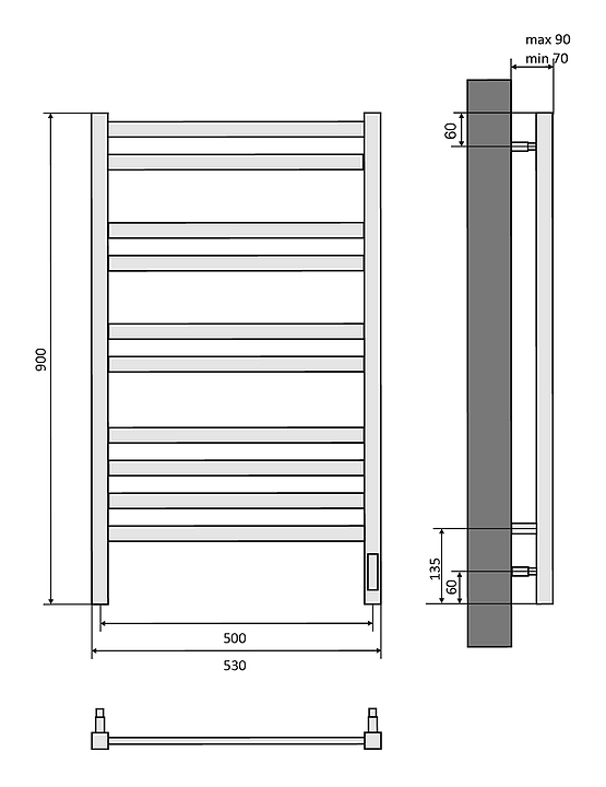Полотенцесушитель электрический Aquatek Поларис П10 50х90 см, черный муар