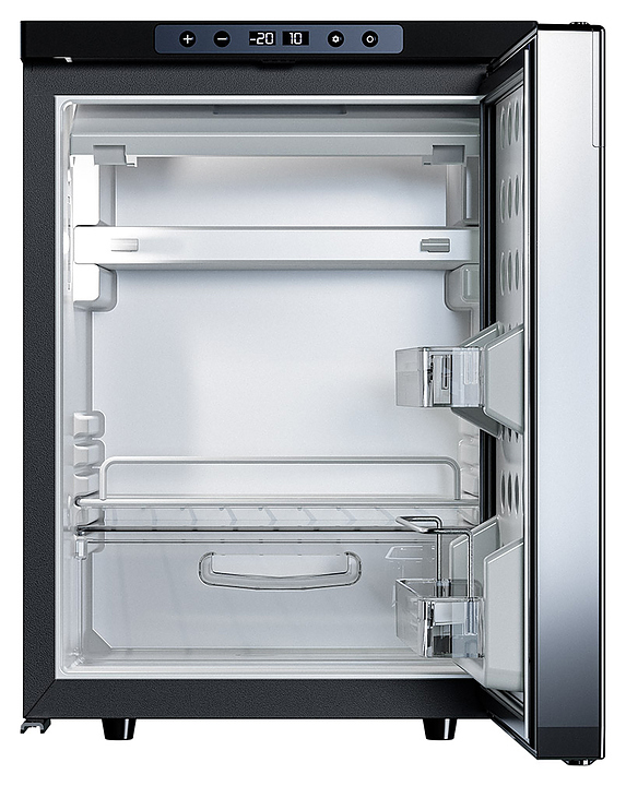 Переносной автохолодильник MEYVEL AF-DB40X предназначен для охлаждения, заморозки, хранения и транспортировки продуктов питания и напитков в легковых и грузовых автомобилях, автодомах, специальной технике, лодках, катерах, яхтах, других видах транспорта и в быту. Модель оснащена компрессором, электронным термостатом, 2 камерами, выдвижной контейнер для овощей и фруктов, горизонтальной решетчатой полкой с бортиком, дверцей с 2 боковыми съемными полками, сменной внешней панелью и ЖК-дисплеем. Корпус выполнен из стали с антикоррозийным покрытием, теплоизоляция – пенополиуретан высокой плотности. Особенности: