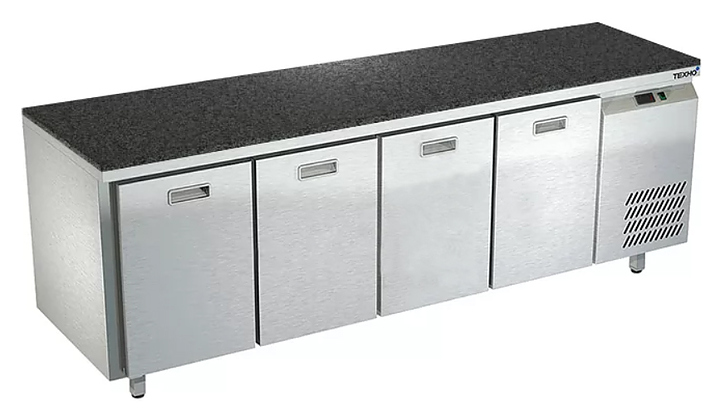 Морозильный стол Техно-ТТ СПБ/М-323/04-2207 предназначен для раскатки теста, обработки, заморозки и долговременного хранения продуктов, полуфабрикатов, напитков и мороженого на предприятиях общественного питания и торговли. Модель оснащена 4 секциями с 4 ящиками, направляющими с доводчиками (Австрия) и круглыми ножками, регулируемыми по высоте на 50 мм (Италия). Корпус выполнен из нержавеющей стали AISI 430, задняя стенка и дно - из оцинкованной стали, столешница - из камня. Стол поставляется в собранном виде. Особенности: