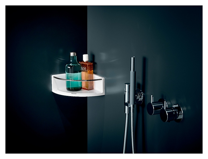 Полка угловая подвесная EMCO Round с бортиком, белая, хром