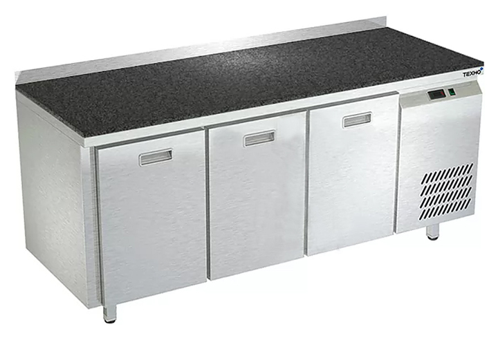 Морозильный стол Техно-ТТ СПБ/М-423/03-1807 предназначен для раскатки теста, обработки, заморозки и долговременного хранения продуктов, полуфабрикатов, напитков и мороженого на предприятиях общественного питания и торговли. Модель оснащена 3 секциями с 3 ящиками, направляющими с доводчиками (Австрия), бортом и круглыми ножками, регулируемыми по высоте на 50 мм (Италия). Корпус выполнен из нержавеющей стали AISI 430, задняя стенка и дно - из оцинкованной стали, столешница - из камня. Стол поставляется в собранном виде. Особенности: