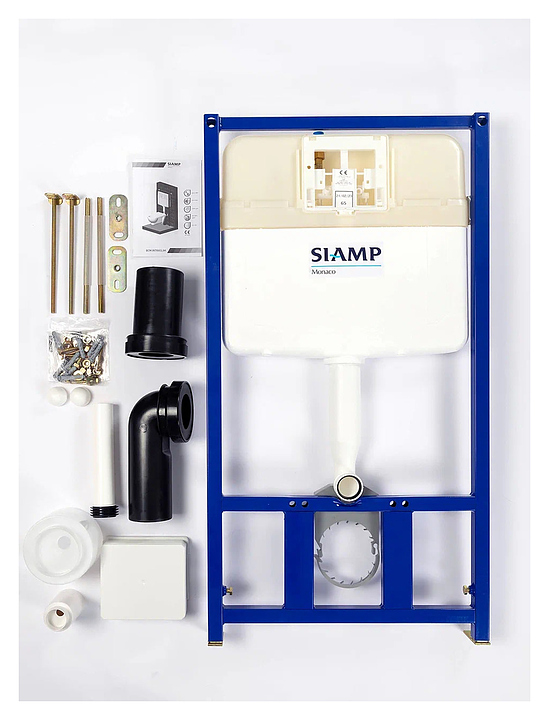 Инсталляция Siamp 10014228+31191010 предназначена для установки с подвесными унитазами. В комплект поставки входят инсталляция с бачком BCM INTRASLIM 10014228 и кнопка смыва Smarty 31191010. Особенности: