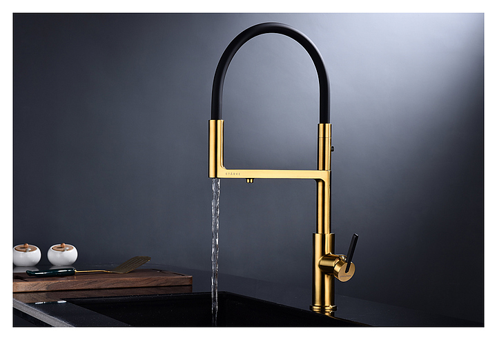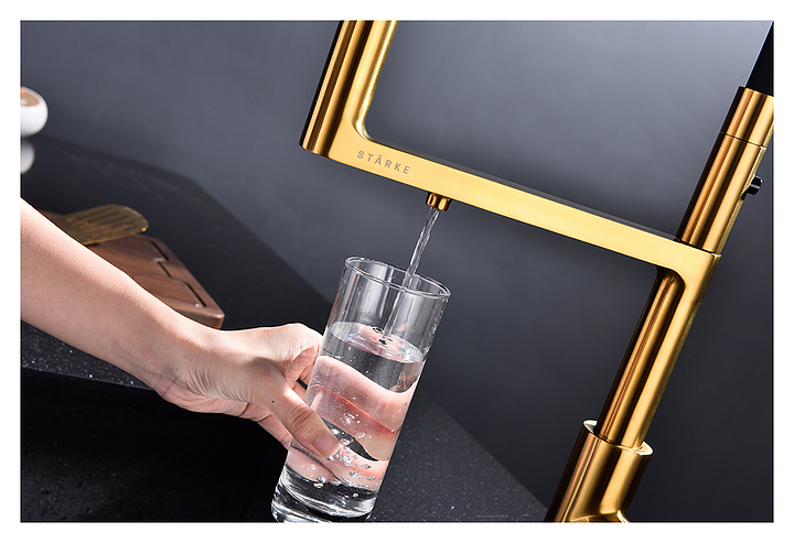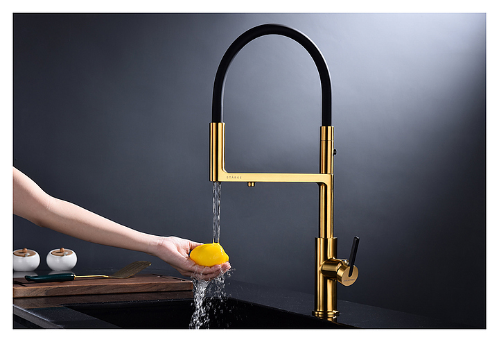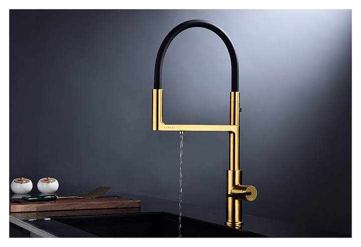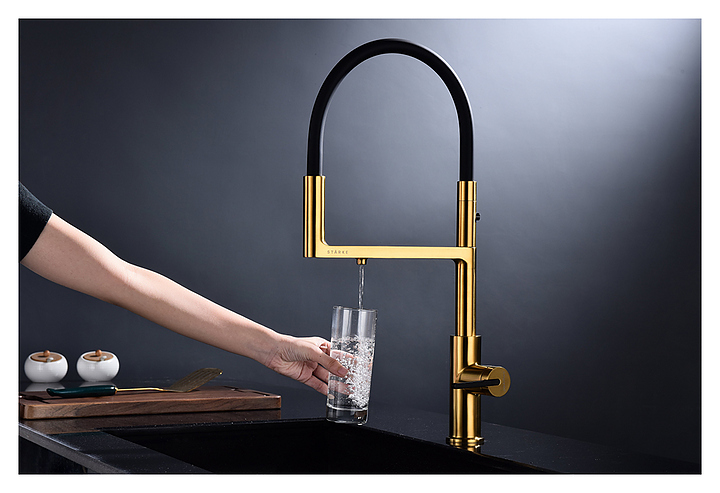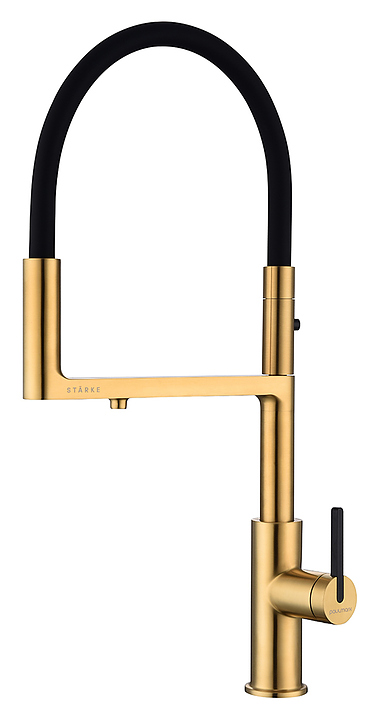 Смеситель Paulmark Tornado To213402-BG предназначен для подачи горячей и холодной воды в кухонных помещениях. Модель оснащена гибким изливом, дополнительным каналом для фильтрованной воды и керамическим картриджем, обеспечивающим плавный ход рычага смесителя, контроль и точность при выборе напора и температуры воды. Смеситель монтируется с помощью гайки. Изделие выполнено из латуни, отличающейся прочностью, долговечностью и устойчивостью к перепадам температуры, излив - из силикона. Дополнительные характеристики: