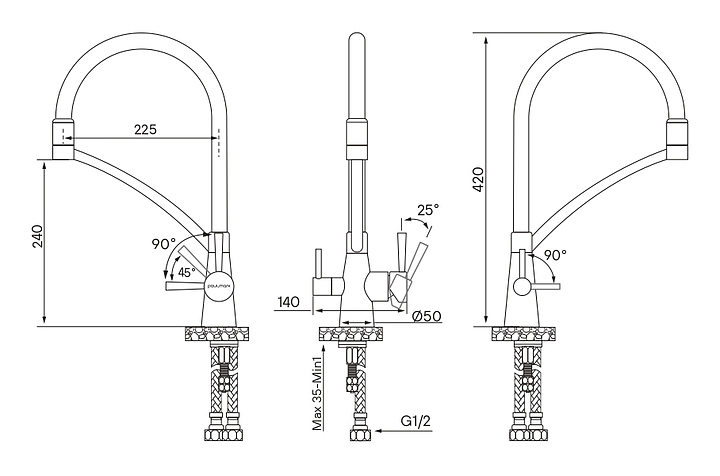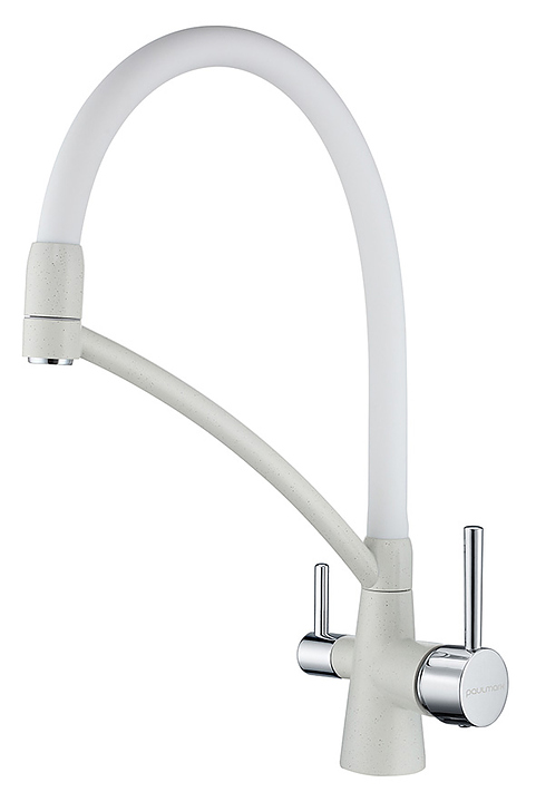 Смеситель Paulmark Siegen Si213111-331 предназначен для подачи горячей и холодной воды в кухонных помещениях. Модель имеет совмещенный излив для фильтра и съемный аэратор, который экономит расход воды, уменьшает шум и снижает количество брызг. Керамический картридж обеспечивает плавный ход рычага смесителя, контроль и точность при выборе напора и температуры воды. Изделие выполнено из латуни, отличающейся прочностью, долговечностью и устойчивостью к перепадам температур, излив - из силикона, аэратор - из пластика. В комплект поставки входят крепления,гибкая подводка и переходник для подключения фильтра. Дополнительные характеристики: