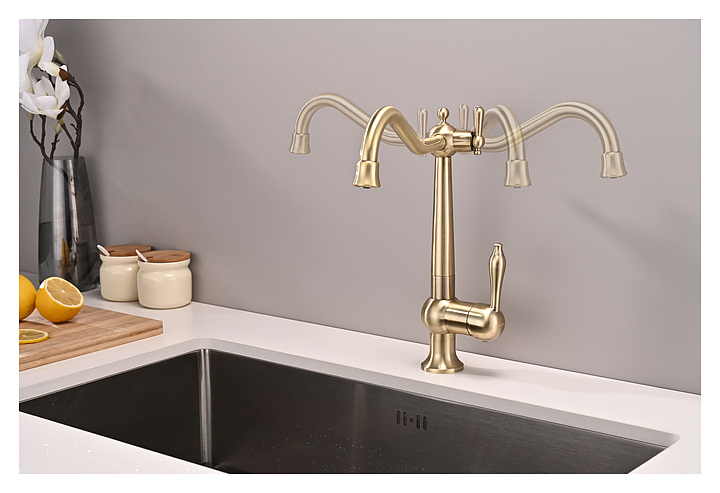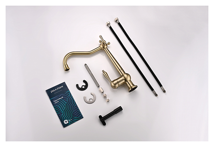 Смеситель Paulmark Retro Re213226-BR предназначен для подачи горячей и холодной воды в кухонных помещениях. Модель имеет совмещенный излив для фильтра и аэратор, который экономит расход воды, уменьшает шум и снижает количество брызг. Керамический картридж обеспечивает плавный ход рычага смесителя, контроль и точность при выборе напора и температуры воды. Изделие выполнено из латуни, отличающейся прочностью, долговечностью и устойчивостью к перепадам температур. В комплект поставки входят гибкая подводка, гайки и крепления. Дополнительные характеристики: