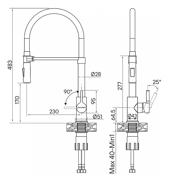 Смеситель для кухни Paulmark Halt Ha214021-SBG