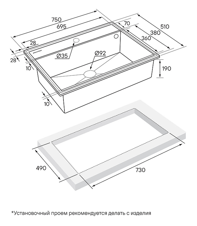 Мойка Paulmark Stepia-750 PM117551-GRS предназначена для рационального планирования рабочего места на кухне. Модель оснащена широкой задней поверхностью для размещения смесителя и аксессуаров. Дно чаши имеет 4 грани, направленных к сливу под индивидуальным градусом для максимально быстрого ухода воды. Изделие выполнено из гранита, который отличается устойчивостью к механическим повреждениям, а также обладает повышенной термоустойчивостью и экологичностью. В комплект поставки входят телескопический сифон и герметик. Дополнительные характеристики: