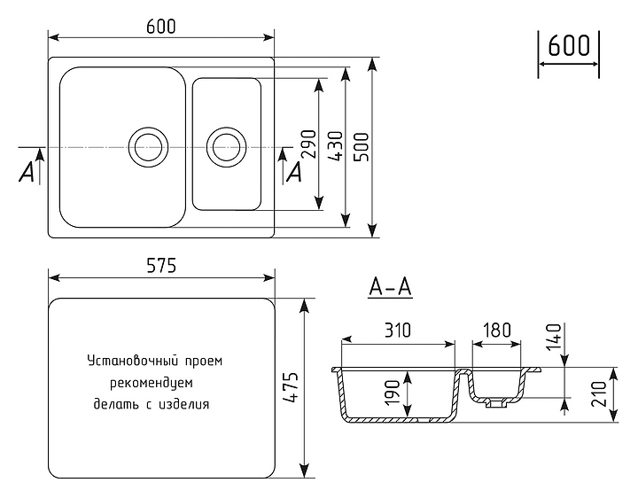 Мойка кухонная Mixline ML-GM21 60х50 cм, серая