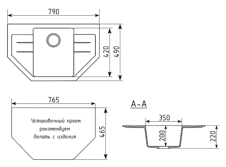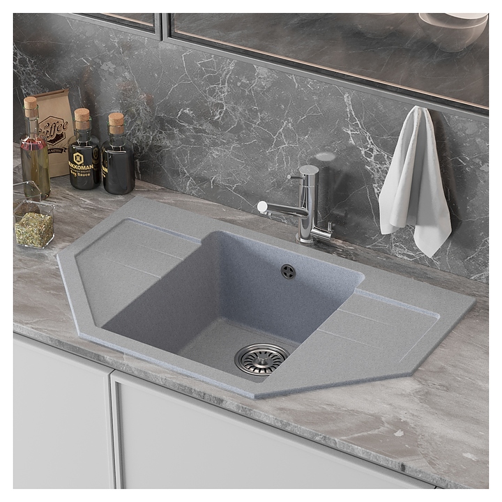 Мойка кухонная угловая Mixline ML-GM24 79х49 cм, серая