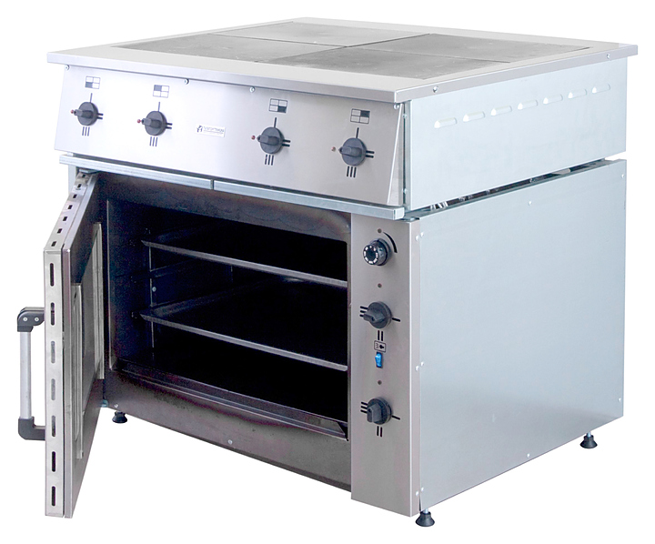 Электрическая плита Тулаторгтехника ПЭ-0,48М предназначена для приготовления различных блюд в наплитной посуде, а также для выпечки хлебобулочных и кондитерских изделий на предприятиях общественного питания и торговли. Модель оснащена нейтральным шкафом, 2 выдвижными лотками под конфорками для сбора жидкости и регулируемыми по высоте опорами, что позволяет компенсировать неровности пола. Рабочая и лицевые поверхности выполнены из нержавеющей стали, боковые и задняя — из оцинкованной. В комплект поставки входят 2 противня GN 2/1 глубиной 20 мм. Особенности: