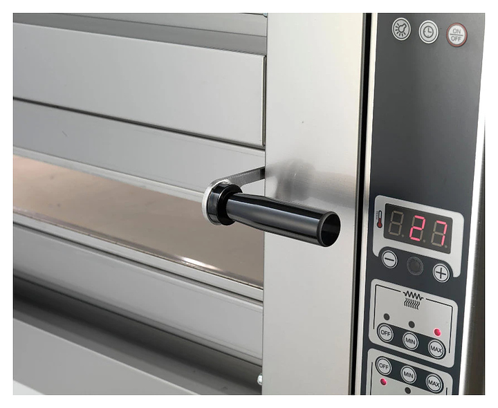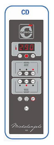 Подовая печь для пиццы Cuppone DN435/1CD серии Donatello используется на предприятиях общественного питания и торговли. Модель оснащена цифровой панелью управления, откидной дверью с обзорным окном и галогеновым освещением камеры. Корпус и камера выполнены из нержавеющей стали, под - кордиеритового огнеупорного камня. Печь используется совместно с вытяжным зонтом Cuppone KDN635AS. Особенности: