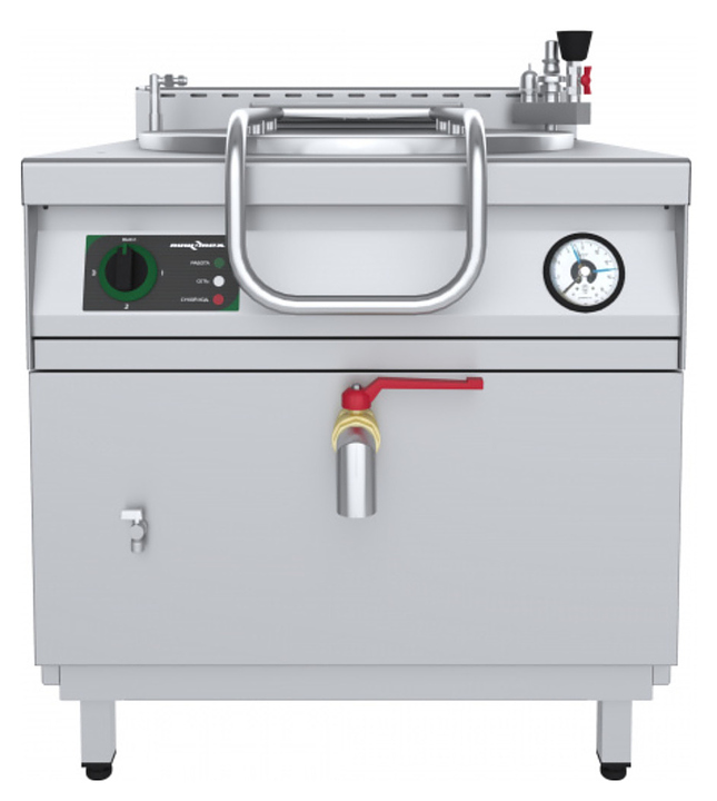Пищеварочный электрический котел ПищТех КПЭЛ-100 предназначен для кипячения воды, варки бульонов, приготовленияраных блюд, соусов и десертов на предприятиях пищевой промышленности и общественного питания. Столешница, варочная емкость, парогенератор, «рубашка» паровая, крышка с ручкой, облицовочные панели сбоку и спереди выполнены из нержавеющей стали, спина и основание - из оцинкованной стали. Особенности: