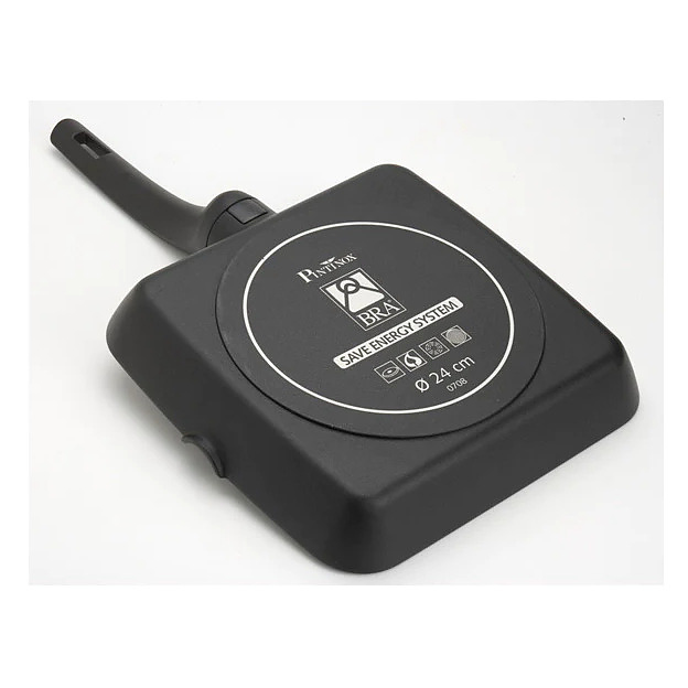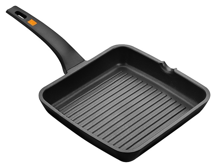 Сковорода-гриль BRA&Monix A271428 Efficient предназначена для приготовления гриль-блюд на любых типах варочных поверхностей, включая индукционные, на предприятиях общественного питания и в домашних условиях. Емкость квадратного сечения оснащена сбалансированной фиксированной рукояткой с удобным захватом и отверстием для подвешивания. Корпус выполнен из литого алюминия, основание емкости – из стали, рукоятка – из термостойкого бакелита черного цвета с оранжевой силиконовой вставкой с логотипом. Особенности: