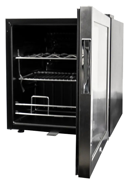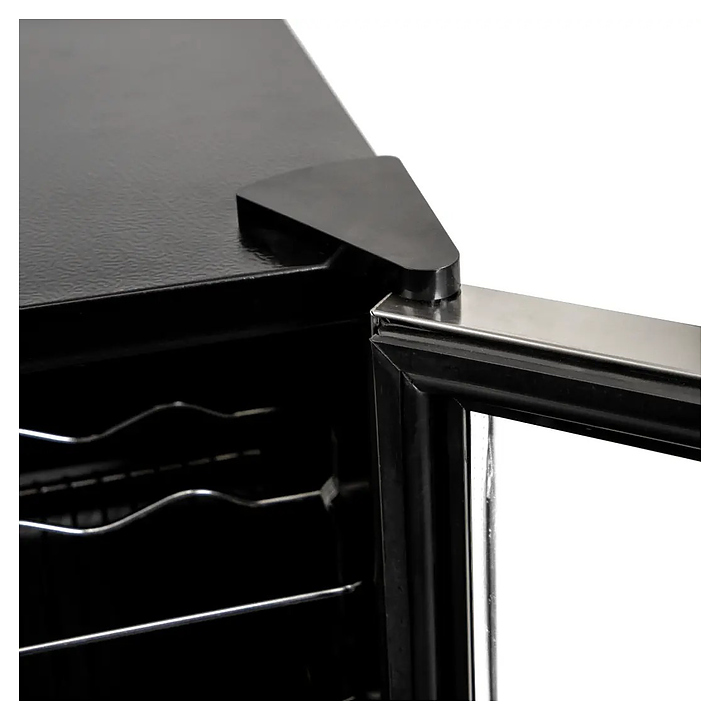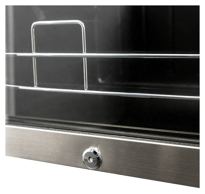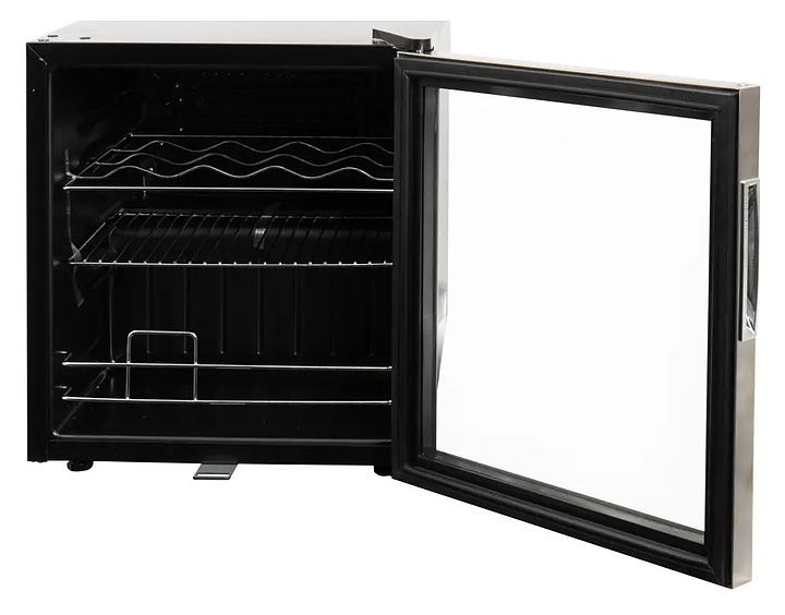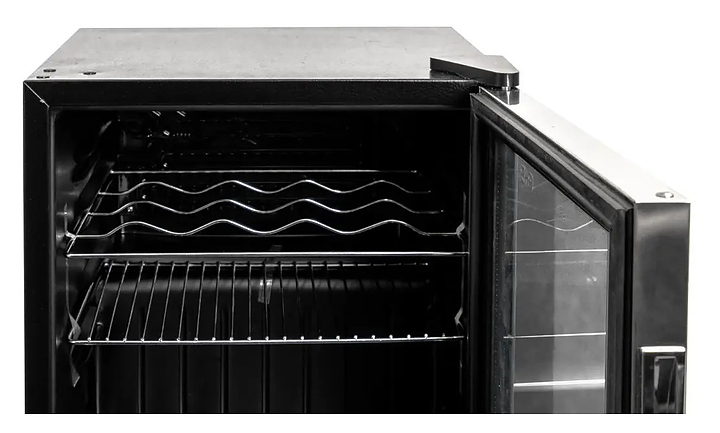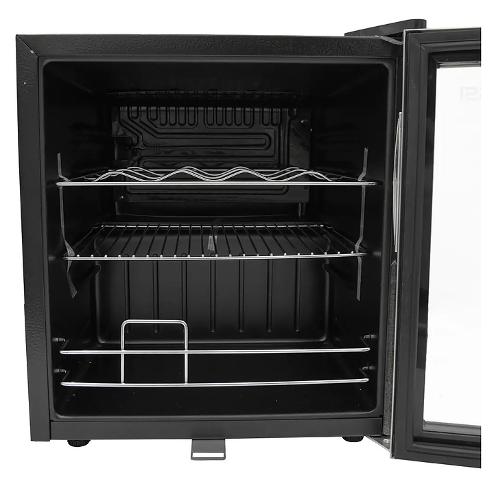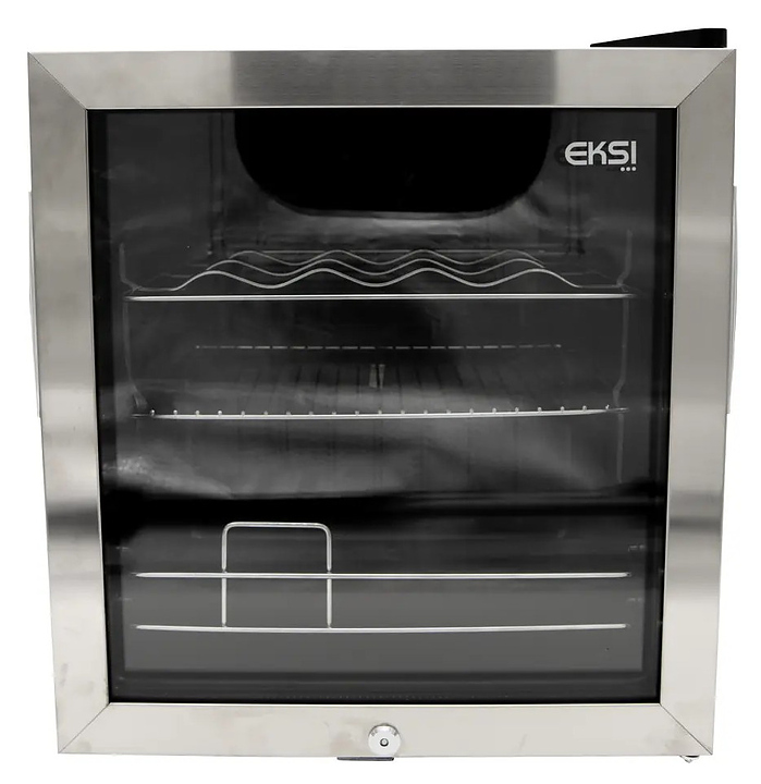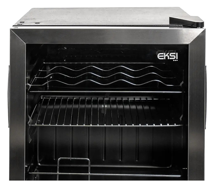 Барный холодильный шкаф EKSI BRG46 используется на предприятиях общественного питания и торговли для демонстрации, охлаждения и длительного хранения напитков в банках и бутылках. Модель оснащена 2 выдвижными решетчатыми полками, тонированной стеклянной дверью с двойным остекленением, двойным поддоном-каплесборником на задней стенке и регулируемыми ножками. Особенности: