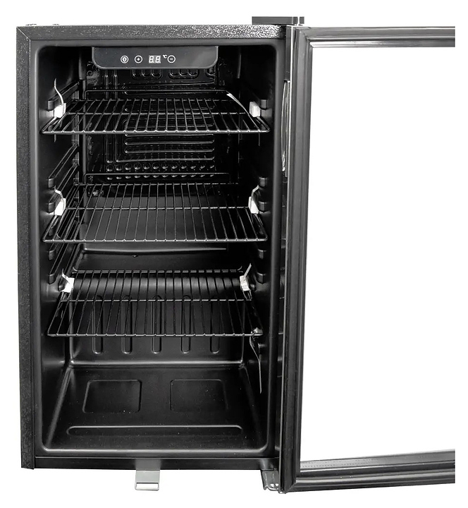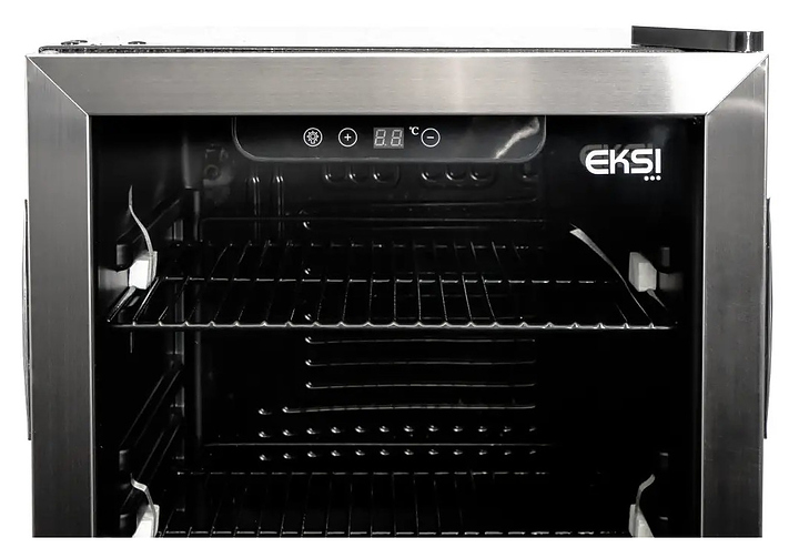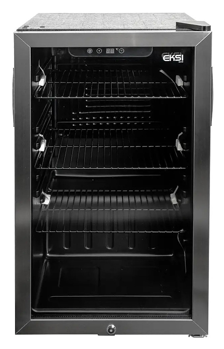 Барный холодильный шкаф EKSI BRG90 используется на предприятиях общественного питания и торговли, барах, отелях и гостиницах для демонстрации, охлаждения и длительного хранения продуктов и напитков. Модель оснащена 3 решетчатыми полками, тонированной стеклянной дверью с двойным остеклением, поддоном-каплесборником на задней стенке и регулируемыми ножками. Рама двери выполнена из нержавеющей стали. Особенности: