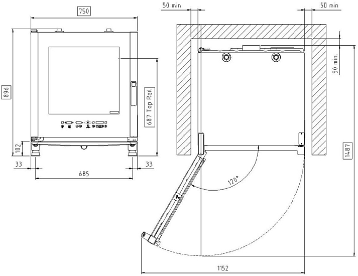 Реверсивная дверца с возможностью переустановки даже после начала запуска и работы печи (кроме моделей 20 GN 2/1 и 20 GN 1/1)