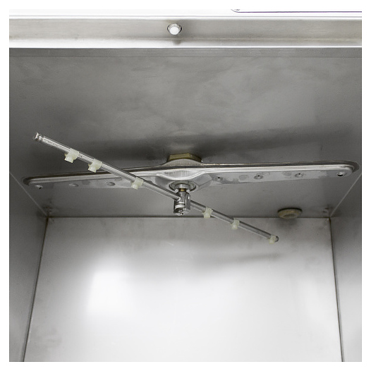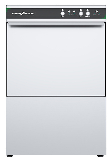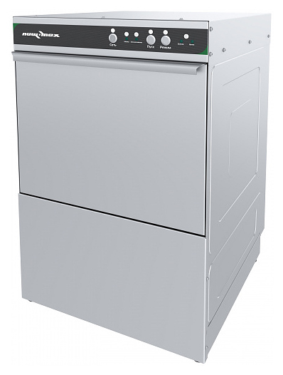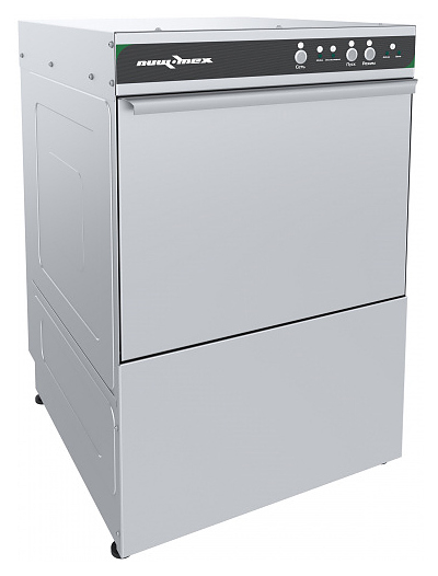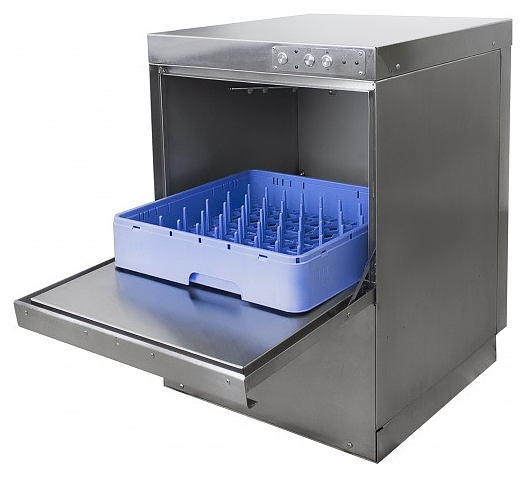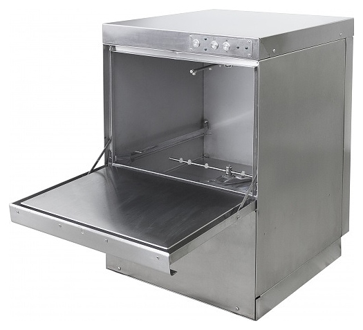 Посудомоечная машина Пищевые Технологии МП-500Ф-02 предназначена для мытья в кассетах различной столовой посуды с применением жидких моющих и ополаскивающих средств на предприятиях общественного питания и торговли. Модель оснащена фронтальной камерой с моечной ванной, бойлером, электронасосом, насосом-дозатором ополаскивающего средства, верхними и нижними моечными рукавами, откидной дверью с горизонтальной рукояткой и кнопочной панелью управления. Камера, дверь и основные детали разбрызгивателей выполнены из нержавеющей стали AISI 304, корпус - из нержавеющей стали AISI 201. В комплект поставки входят кассета для тарелок, кассета для стаканов и чашек, стакан для столовых приборов и шланг для подключения к водопроводу. Особенности: