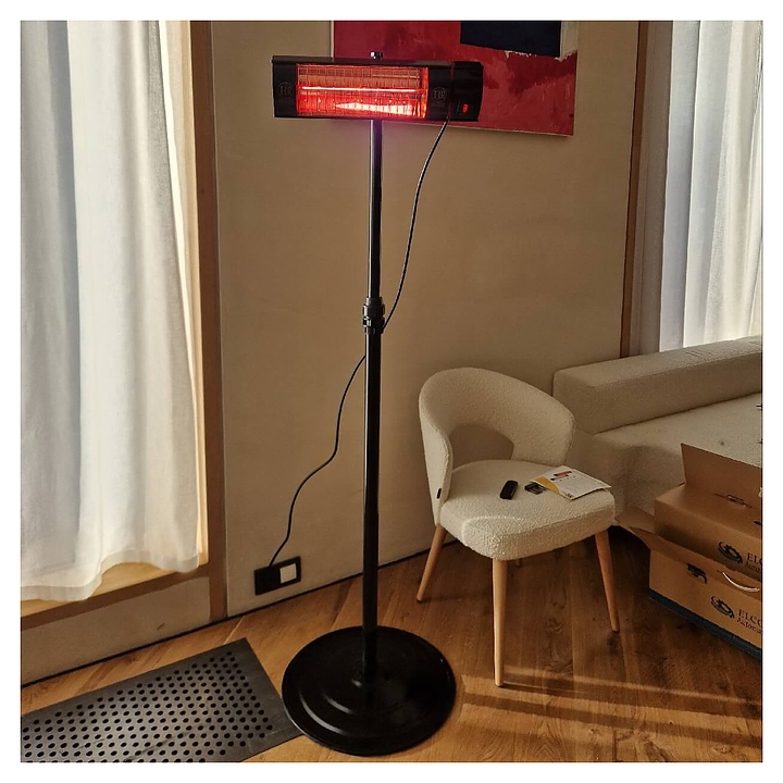 Уличный обогреватель WWT ELCON RCH-2000/4 используется для равномерного обогрева и поддержания комфортной температуры воздуха на верандах загородных домов, в беседках, на открытых площадках баров и кафе. Модель оснащена регулировкой мощности нагрева для максимального комфорта. Корпус выполнен из высокопрочного алюминия, который не подвергается коррозии. В комплект поставки входят обогреватель с кабелем питания и вилкой, крепеж и пульт ДУ. Особенности:
