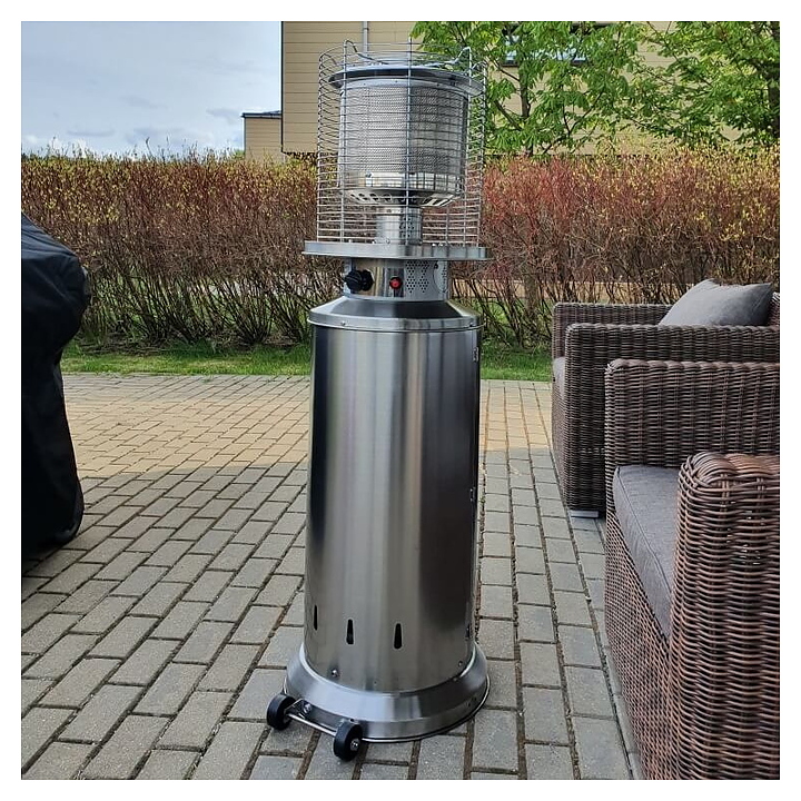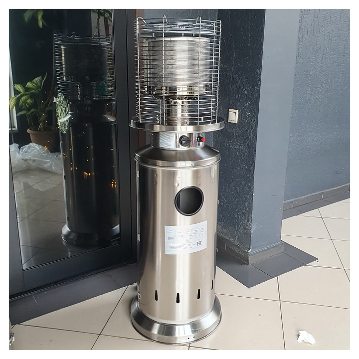 Уличный обогреватель WWT 13H Stainless steel используется для равномерного локального обогрева и поддержания комфортной температуры воздуха веранд, террас, летних кафе, патио зон с невысокими потолками. Модель оснащена пьезоэлементом для поджига, который приводится в действие одним пальцем и позволяет производить моментальный запуск горелки. Термоэлектрическая автоматика отключает газ при гашении пламени, что обеспечивает безопасную эксплуатацию. Газовая горелка выполнена из легированной стали, корпус и дверца - из сатинированной стали, опора - из стали с покрытием. В комплект поставки входят обогреватель, редуктор, шланг и хомуты. Особенности: