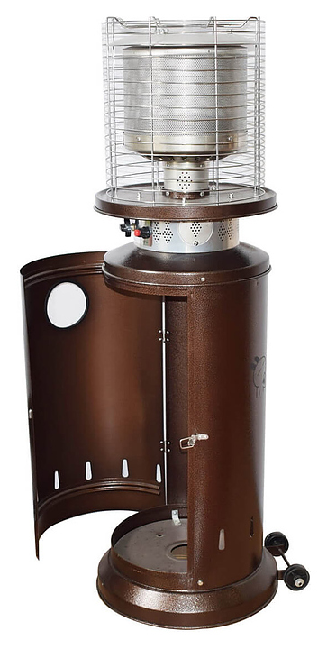 Уличный обогреватель WWT 13H Brown используется для равномерного локального обогрева и поддержания комфортной температуры воздуха веранд, террас, летних кафе, патио зон с невысокими потолками. Модель оснащена пьезоэлементом для поджига, который приводится в действие одним пальцем и позволяет производить моментальный запуск горелки. Термоэлектрическая автоматика отключает газ при гашении пламени, что обеспечивает безопасную эксплуатацию. Газовая горелка выполнена из легированной стали, корпус и дверца - из сатинированной стали, опора - из стали с покрытием. В комплект поставки входят обогреватель, редуктор, шланг и хомуты. Особенности: