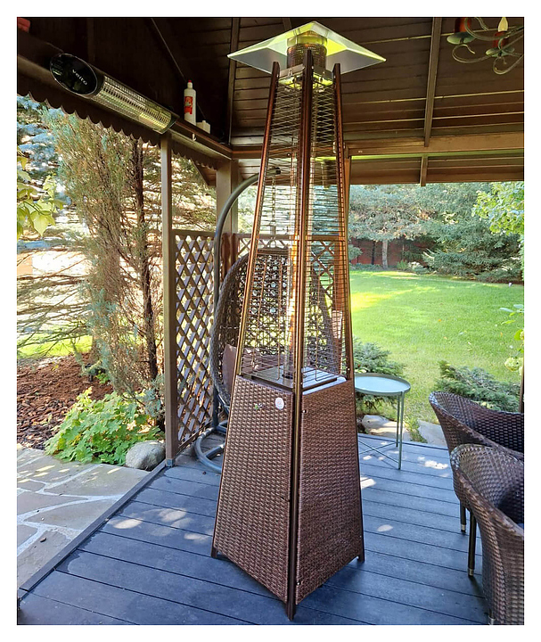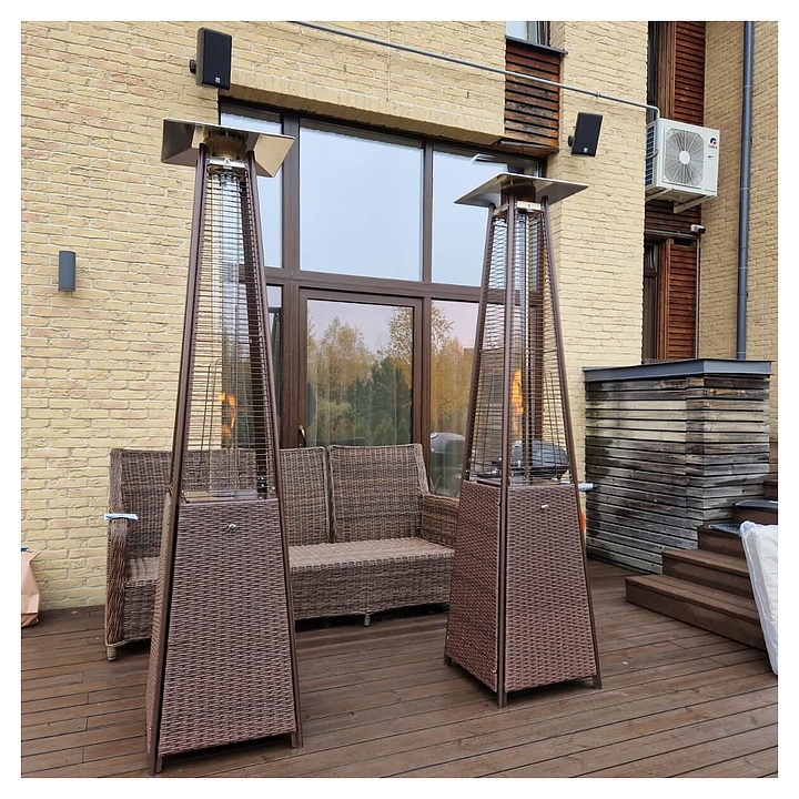 Уличный обогреватель WWT 13I Rotang Brown используется для равномерного обогрева и поддержания комфортной температуры воздуха на даче, на открытых площадках кафе, баров и ресторанов, на верандах домов отдыха и отелей, в беседках загородных отелей и пансионатов, на набережных и городских аллеях. Модель имеет встроенную электронную систему защиты, которая прекращает подачу газа при случайном опрокидывании устройства и гашении. Корпус выполнен из искусственного ротанга. В комплект поставки входят обогреватель, редуктор, шланг и хомуты. Особенности: