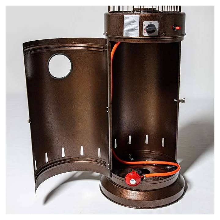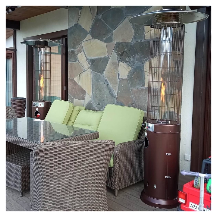 Уличный обогреватель WWT 13D pro Brown mini используется для равномерного обогрева и поддержания комфортной температуры воздуха уличных кафе, открытых площадок, веранд, в загородном доме или на даче. Модель имеет встроенную электронную систему защиты, которая прекращает подачу газа при случайном опрокидывании устройства и гашении. Изделие выполнено из высококачественной прочной стали, колба - из огнеупорного стекла. В комплект поставки входят обогреватель, редуктор, шланг и хомуты. Особенности: