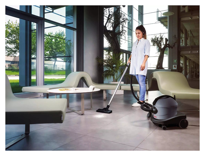 Профессиональный пылесос Comac CA 15 Extra предназначен для сбора мелкого мусора и пыли в учреждениях сферы здравоохранения, зданиях общественного назначения, в сфере гостинично-ресторанного бизнеса, в магазинах, салонах красоты и спортзалах. Модель оснащена одноступенчатым двигателем со сквозным потоком, ручкой-держателем шланга, съемным кабелем, не оставляющими следов колесами и индикатором заполнения мешка. Особенности: